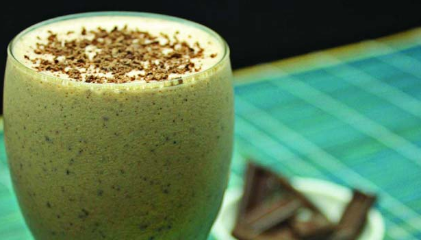 Em um liquidificador, adicione todos os ingredientes e bata até ficar homogêneo. Passe para um copo adequado e acrescente um punhado de raspas de chocolate em cima. Sirva com canudo.